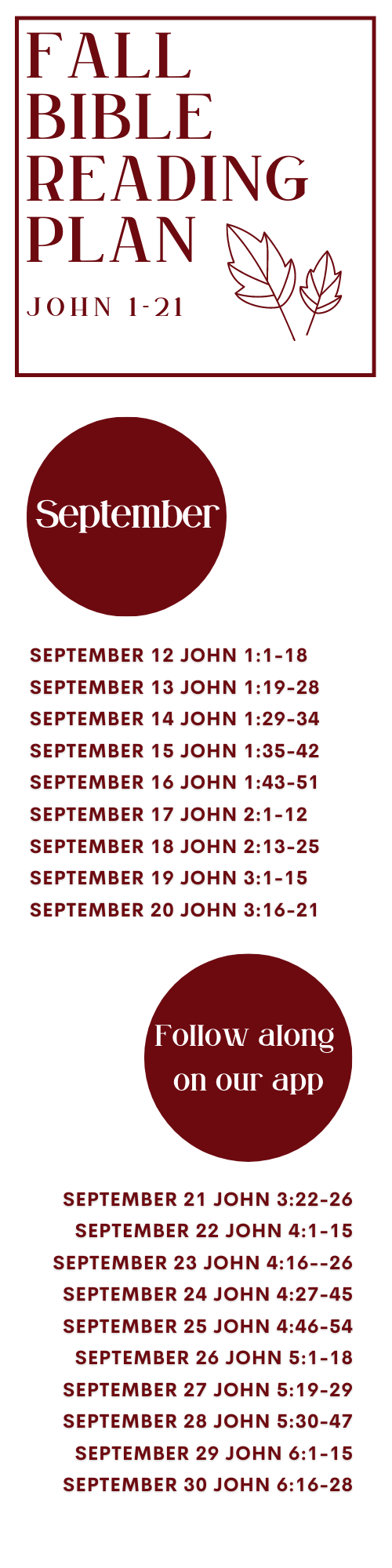 Beginning next Monday, September 12, we will be reading through the book of John together as we, together, kick off the PROOF series. John is full of miracles and we are so excited to work through this together, resting our faith in Jesus.