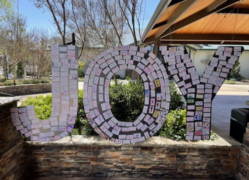 What brings you joy? We encouraged everyone, from ages 2-122 to write it on the magnets provided and shout it loud on this sign in the Commons. Filled front and back, look at the JOY!