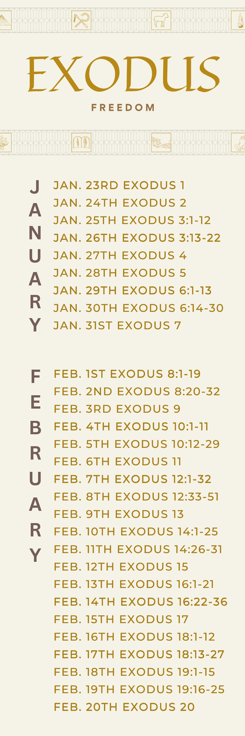 We were so glad to see you on Sunday and apologize if you tried to watch live on YouTube. Our live stream was glitching and we are sincerely sorry. As we begin the study on Exodus, get ready! We'll be covering this book until the end of March while sharing incredible God-honoring stories of His faithfulness. Along with the Sunday morning teachings, we are also going through the book together as a congregational family and invite you in to that.