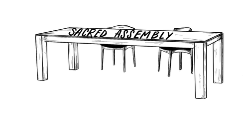 Imagine now a table being a visual of sacred assembly. Perhaps your dinner table doesn't feel so sacred. If it's like mine, there's usually homework spread out for 9 months of the year and Legos or dolls spread out during the other 3 months. It's not often clean and certainly doesn't feel sacred. BUT ... it is where we gather. We gather for meals and game nights and sometimes for family meetings. Well, there or the couch or on our porch, but you get the picture.